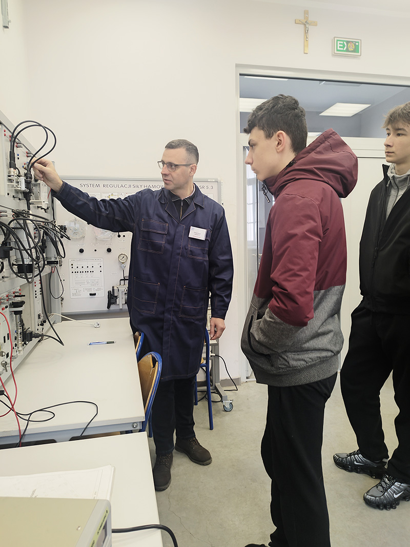 Spacer po szkole: Kandydaci zwiedzili świetnie wyposażone warsztaty, sale lekcyjne oraz kompleks sportowy. Gościom udzielano informacji o zasadach rekrutacji, punktacji oraz perspektywach zatrudnienia po ukończeniu konkretnych kierunków.