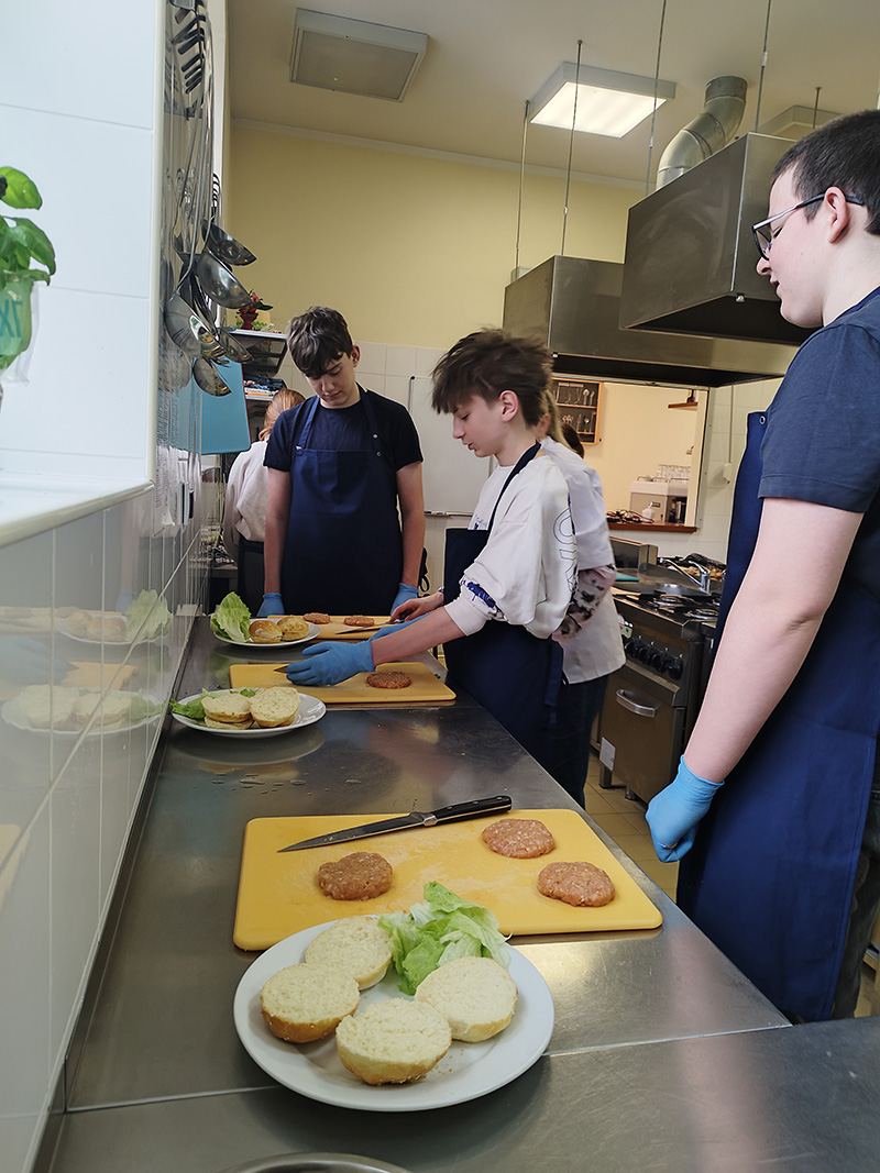 Strefa warsztatów gastronomicznych: ten dział szkoły cieszył się dużym i żywym zainteresowaniem zwiedzających, dobrze wyposażone kuchnie, pięknie przystrojone stoły na sali bankietowej (w pracowni kelnerskiej) obsługiwane przez naszych uczniów pod okiem nauczycieli zawodu przyciągały przyszłych kandydatów.