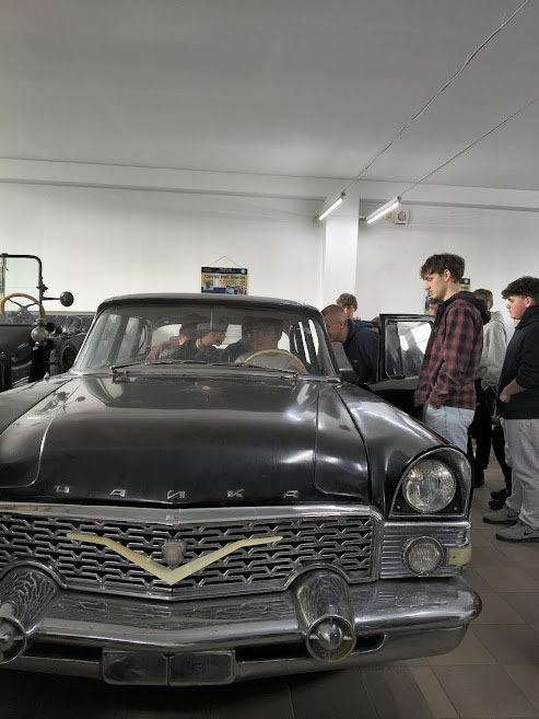 Kolejnym etapem wyjazdu była wizyta w Muzeum Samochodów Zabytkowych w Jasiennicy Rosielnej. To niezwykłe miejsce pozwoliło uczestnikom przenieść się w czasie i podziwiać unikatowe, doskonale zachowane pojazdy z poprzedniej epoki. Uczniowie z dużym zainteresowaniem poznawali historię motoryzacji oraz ciekawostki związane z prezentowanymi eksponatami.
